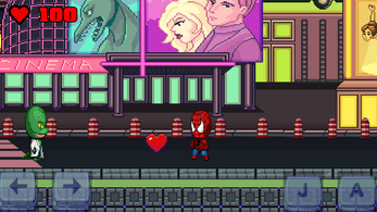 Help the chibi Spider-Man defeat all the enemies on the street! Move left and right, jump on enemies' heads to defeat them, or shoot webs to take them down. Watch out for Rhino — his horns will hurt you if you land on him!
