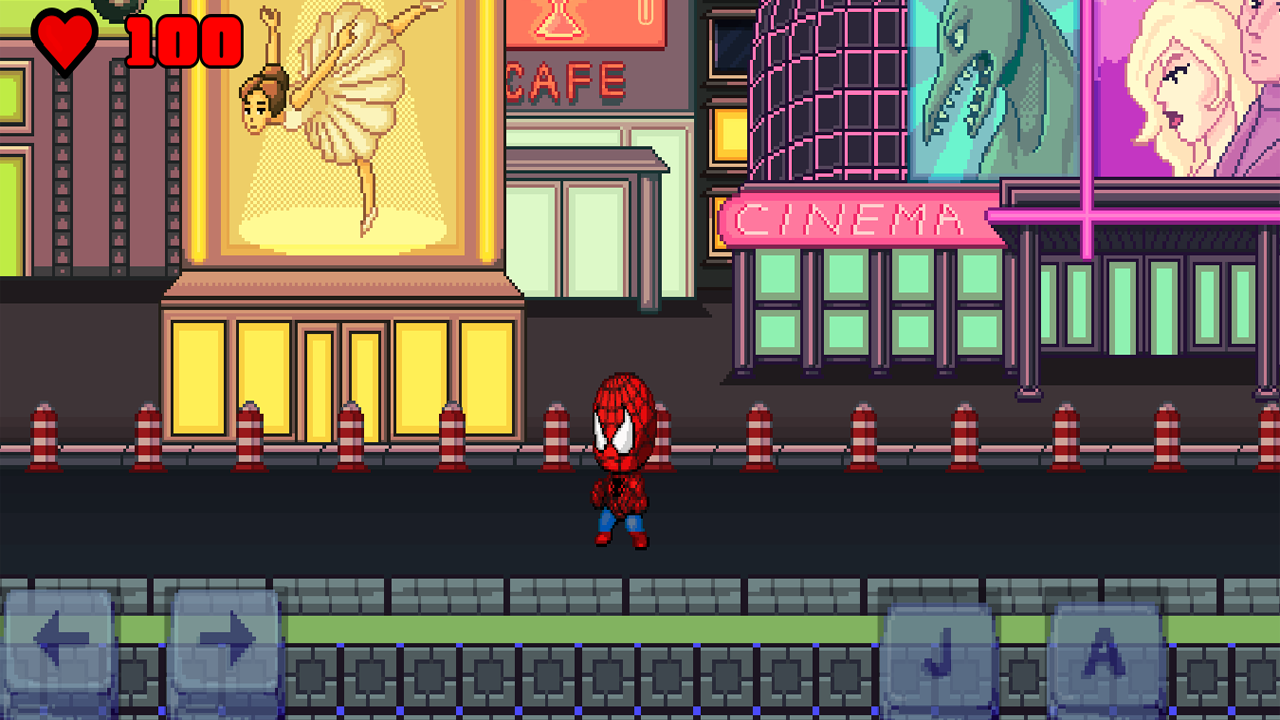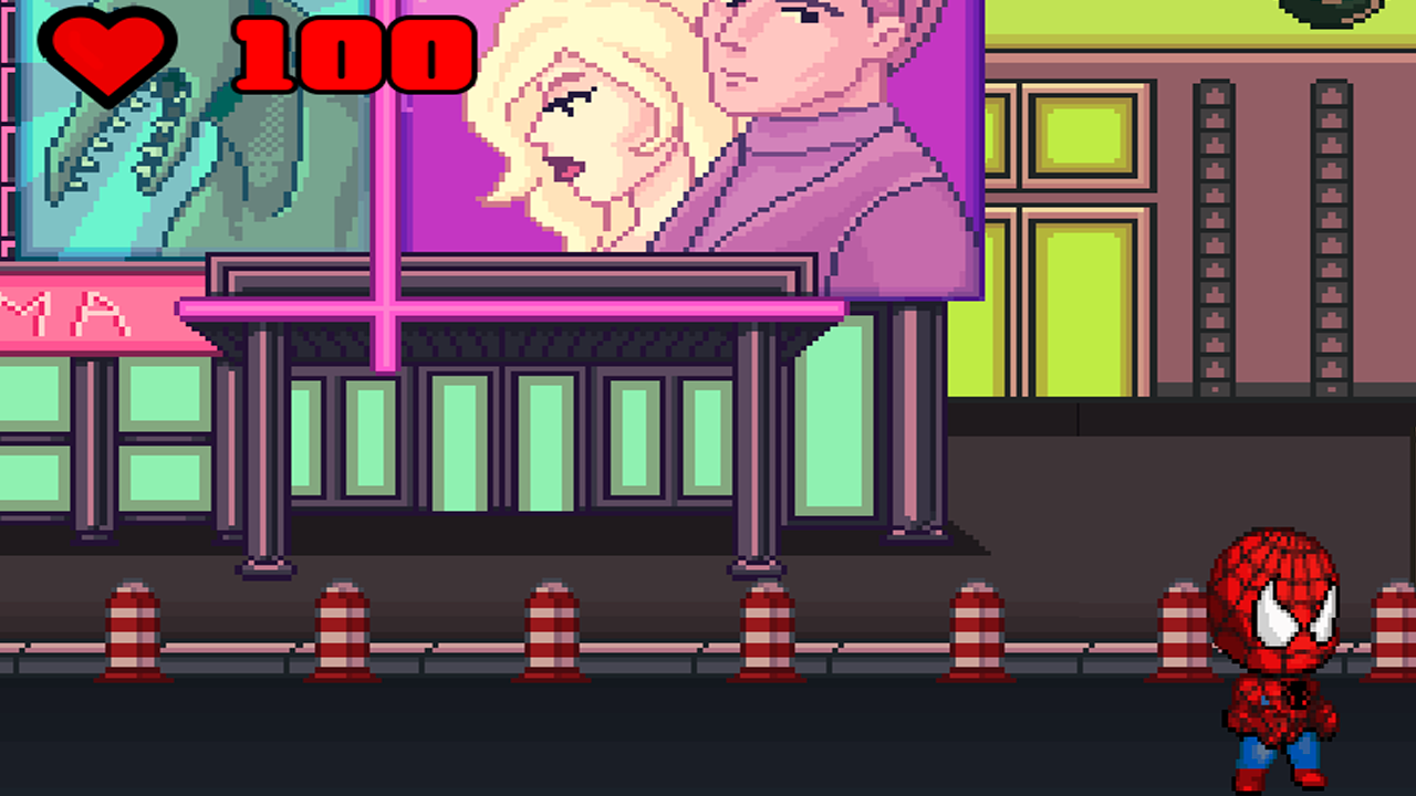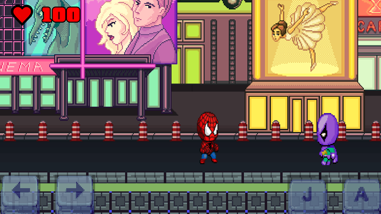 Помоги милому чиби Человеку-Пауку очистить улицу от врагов! Двигайся влево и вправо, прыгай врагам на голову или пускай паутину. Осторожно с Носорогом — его рога причинят тебе урон!